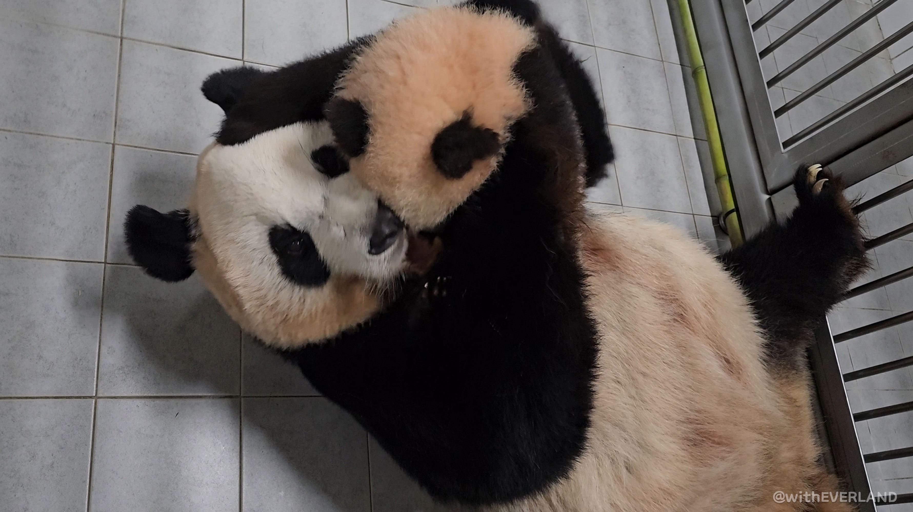 야생에서의 어미 판다가 자신의 보금자리에서 오랜시간 머무르며 육아에 집중하는 모습을 비추어 볼 때,