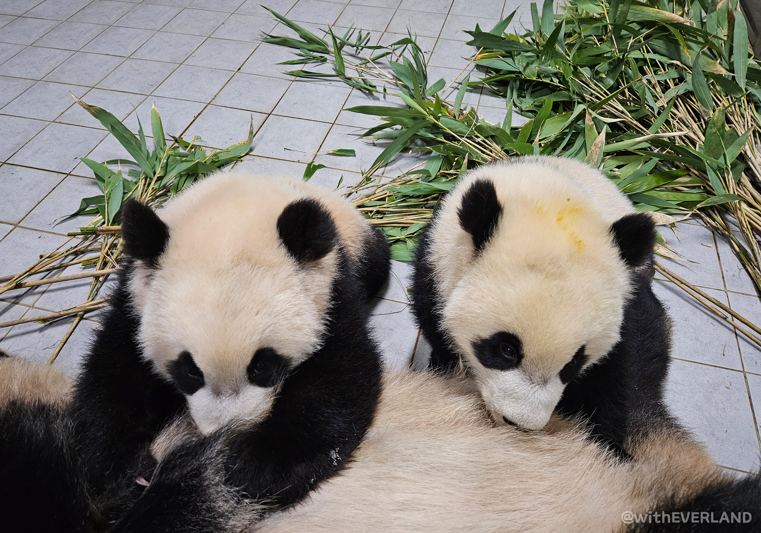 귀여운 쌍둥이 아기판다의 성장 과정을 함께 하면서