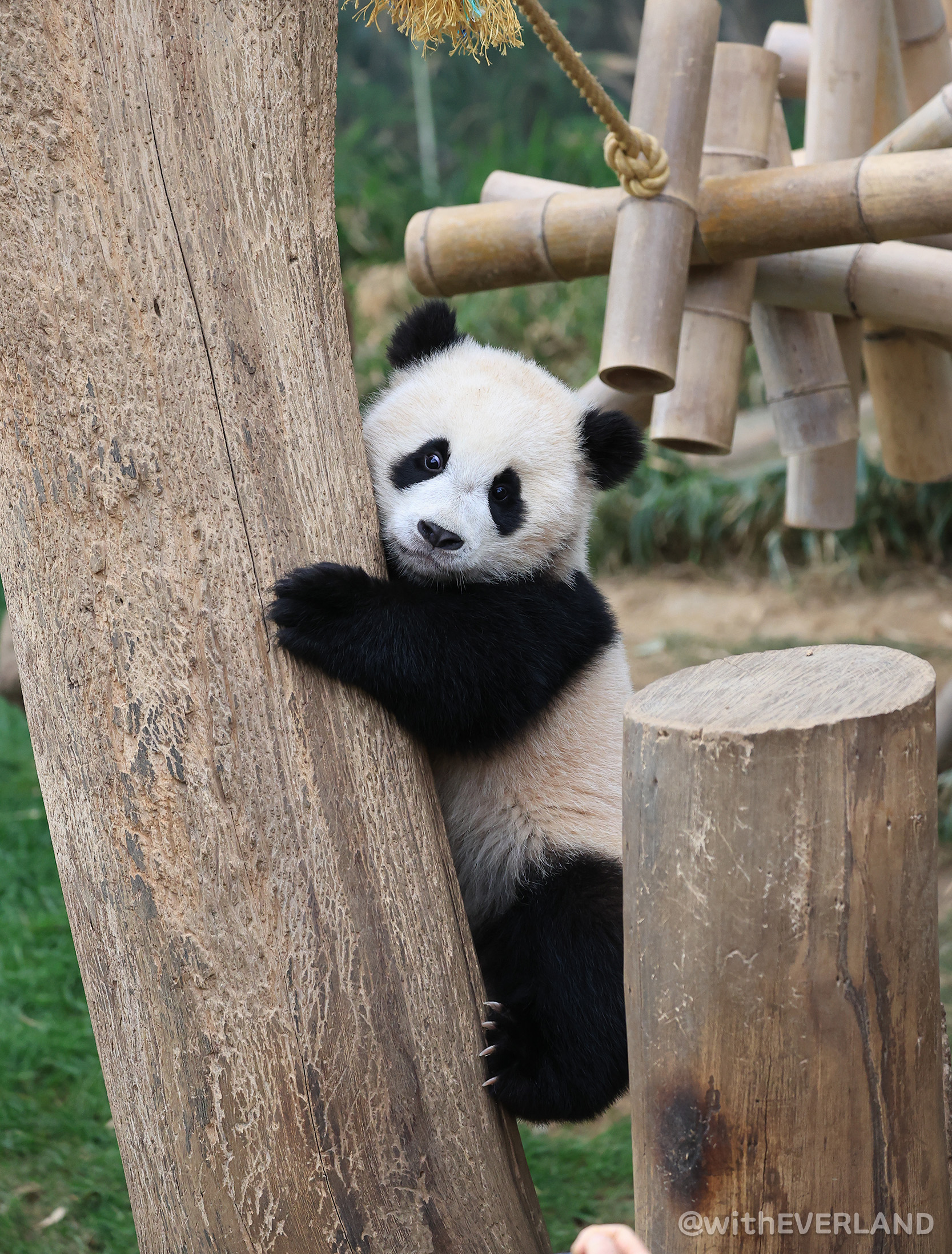 더 크고 싶은 듯 짧은 다리를 쭉 펴고, 허리를 꼿꼿이 세운 후이바오의 모습이 귀엽습니다.