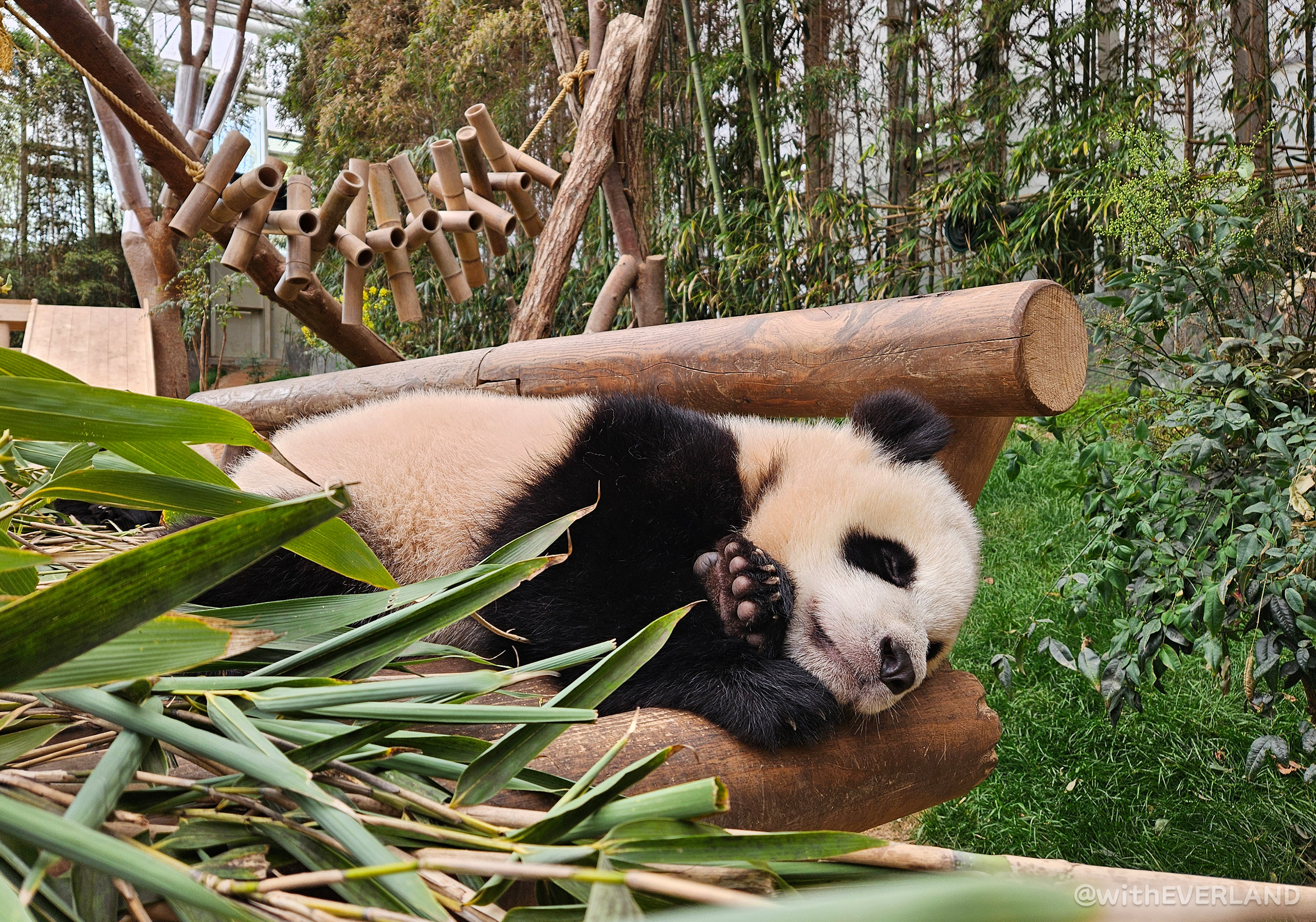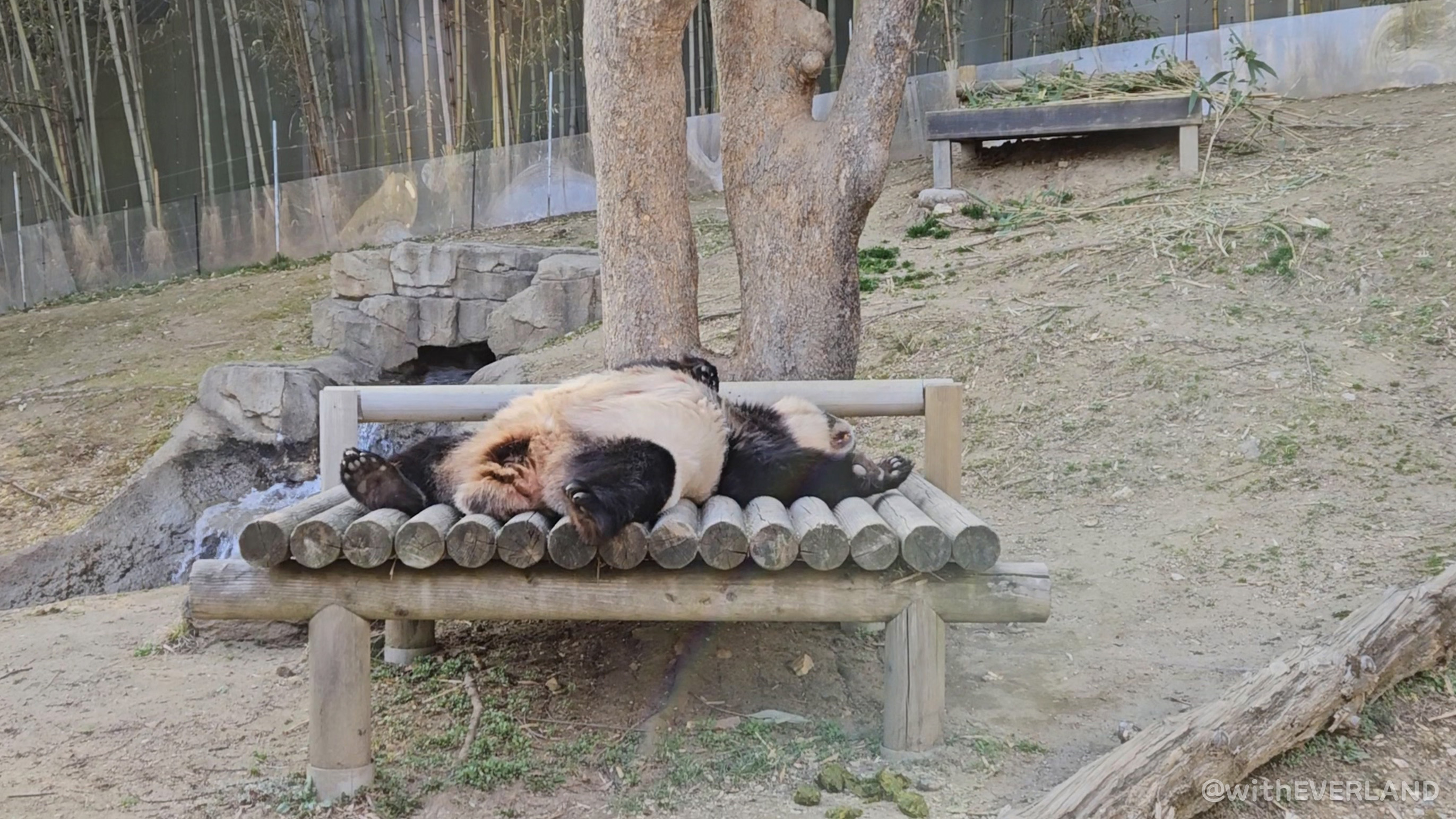 편안한 자세로 낮잠을 자는 아이바오에게 아낌없는 응원과 격려를 보내주었습니다.