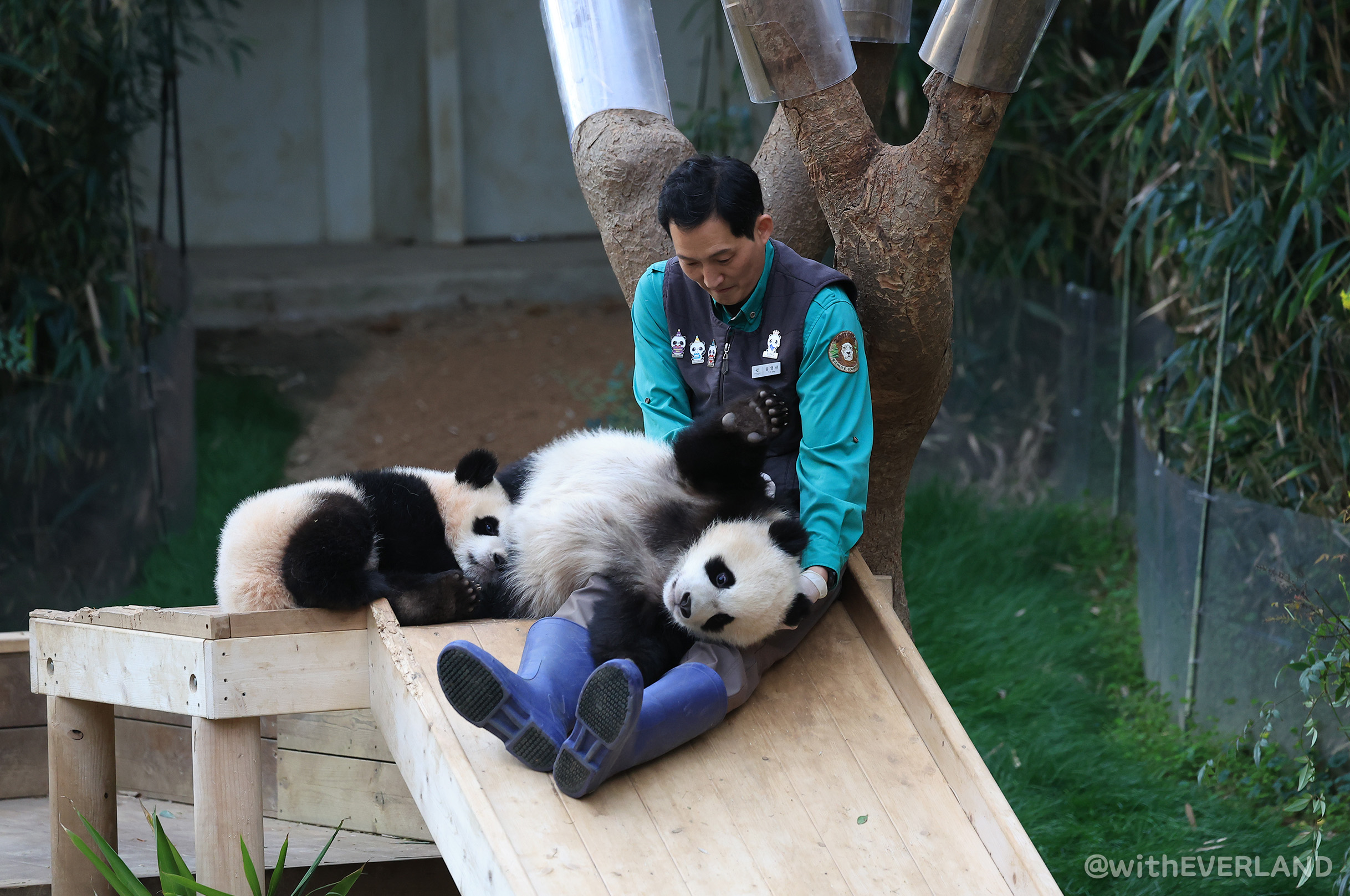 영특한 루이와 후이는 저와 쫓고 쫓기는 놀이를 확실히 이해하고 있는 듯합니다.