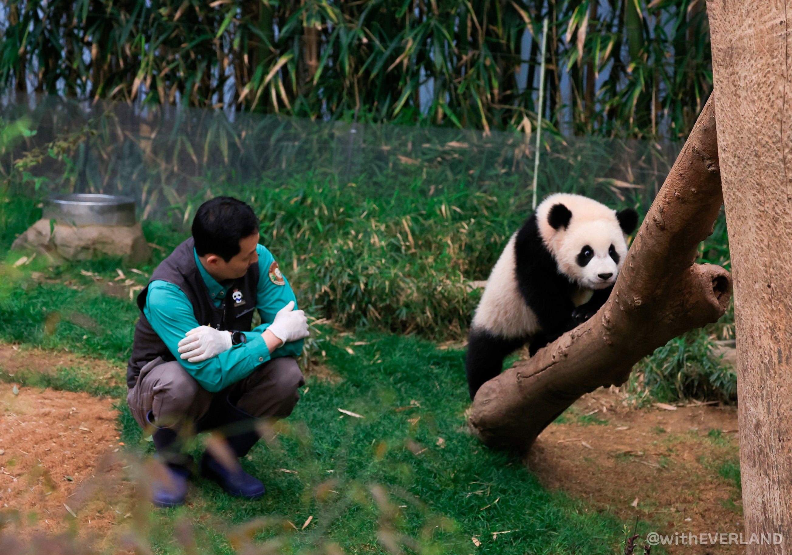 드디어 후이바오도 '어부바' 나무 오르기에 성공했어요.