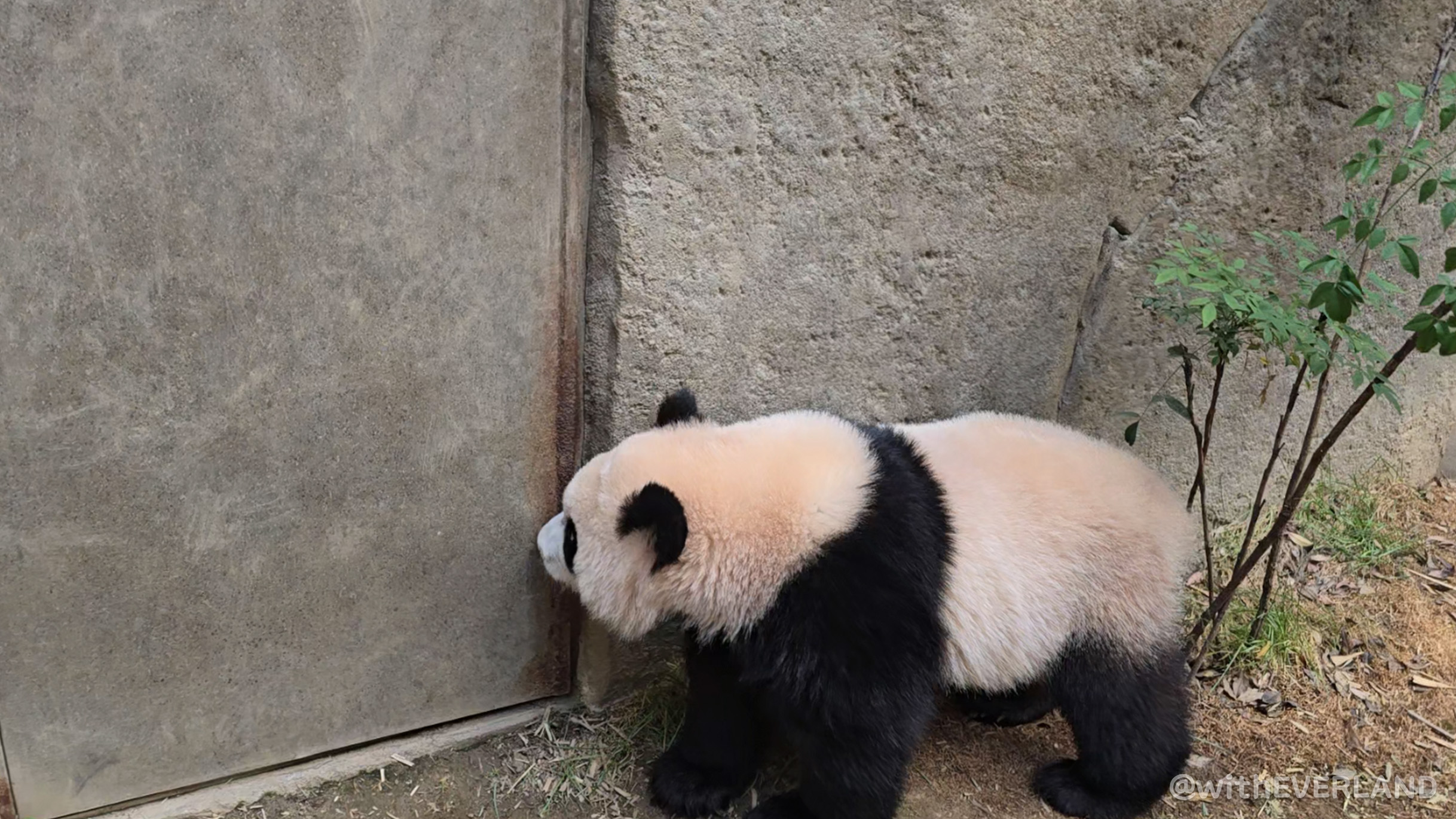 루이바오가 사육사 출입문을 열고 내실로 들어가는 모습이 포착됐습니다.