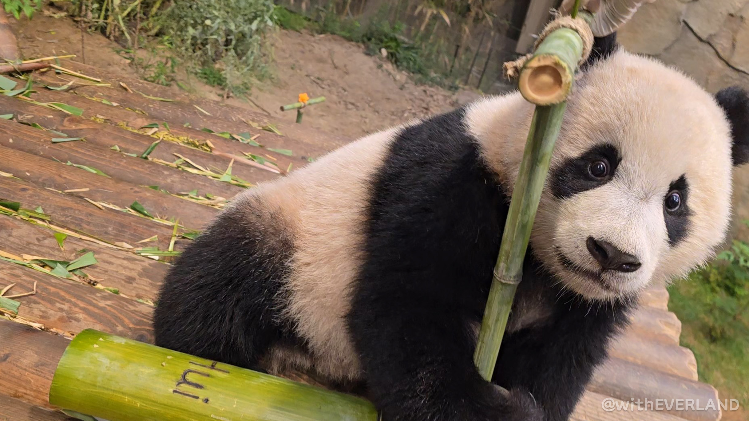 판다월드의 푸르른 기운을 먹으며 루이와 후이바오도 건강하게 쑥쑥 자라고 있는데요.