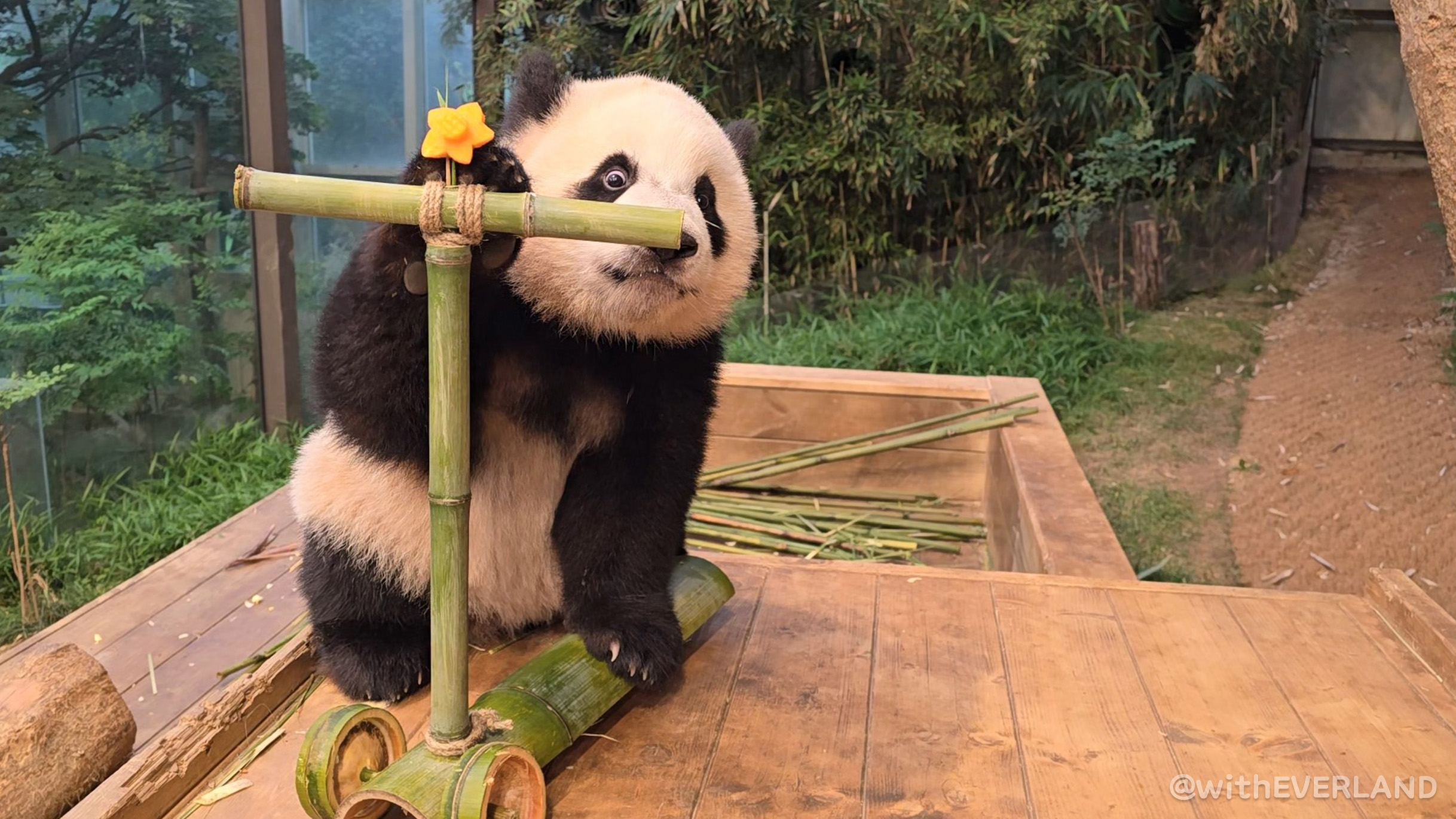 판다월드의 유일한 어린이인 쌍둥이들이 태어나서 처음으로 어린이날을 맞이한 거지요.